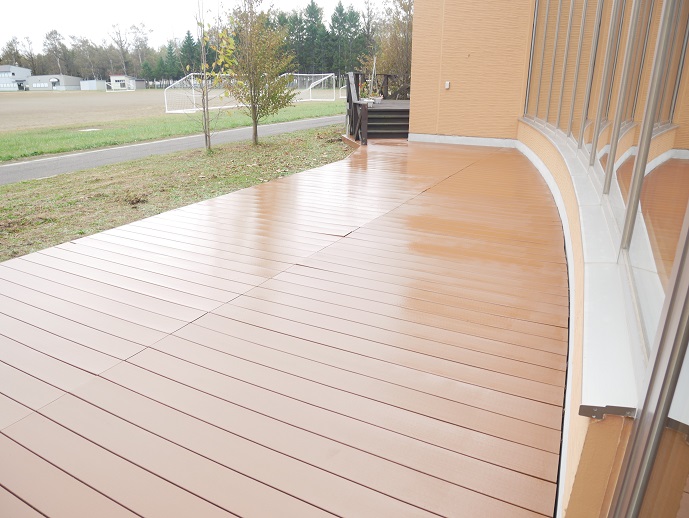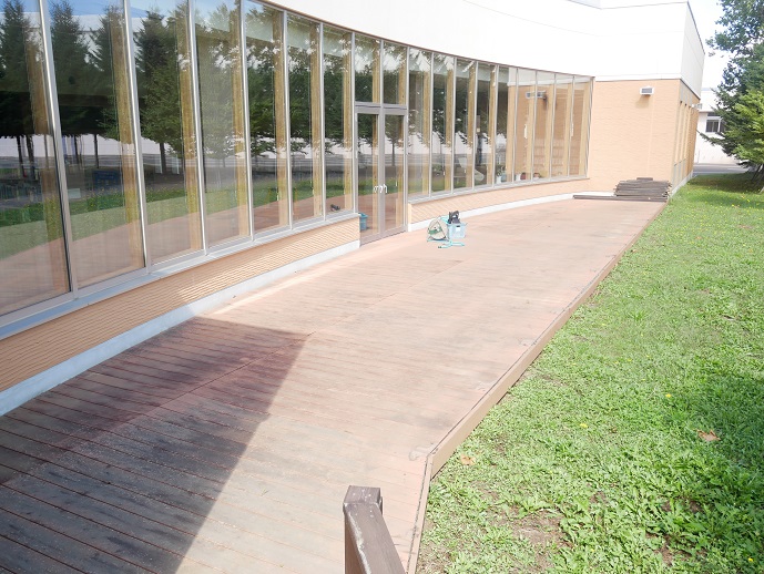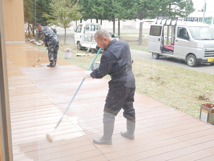 10月12日(日)、地域貢献活動として、斜里町技能士会の皆様のご厚意により、図書館のテラスのペンキを塗り替えていただきました!
