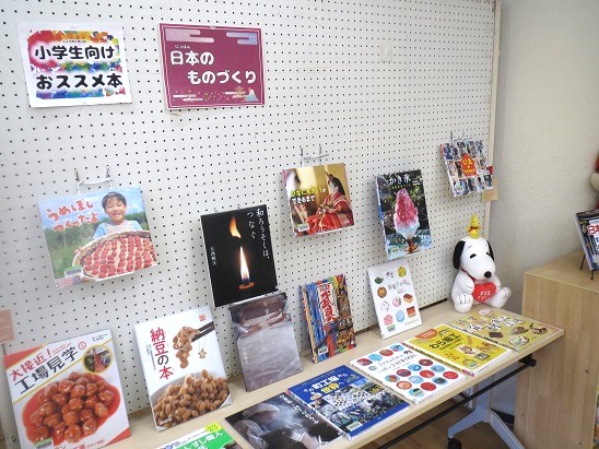 日本の伝統芸能やまちの産業にかかわる職人さん、梅干しなどの日本食づくりなど、日本の伝統的な物づくりについての本を展示します。