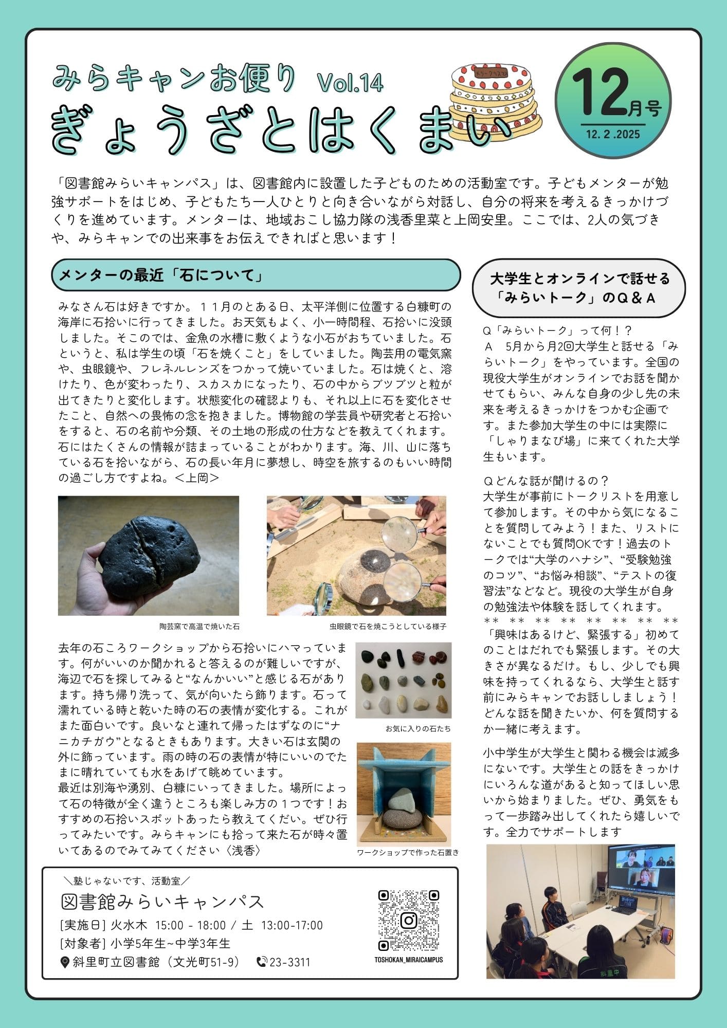 みらいキャンパスのおたより「ぎょうざとはくまい」vol.14(2025年12月号)ができました。