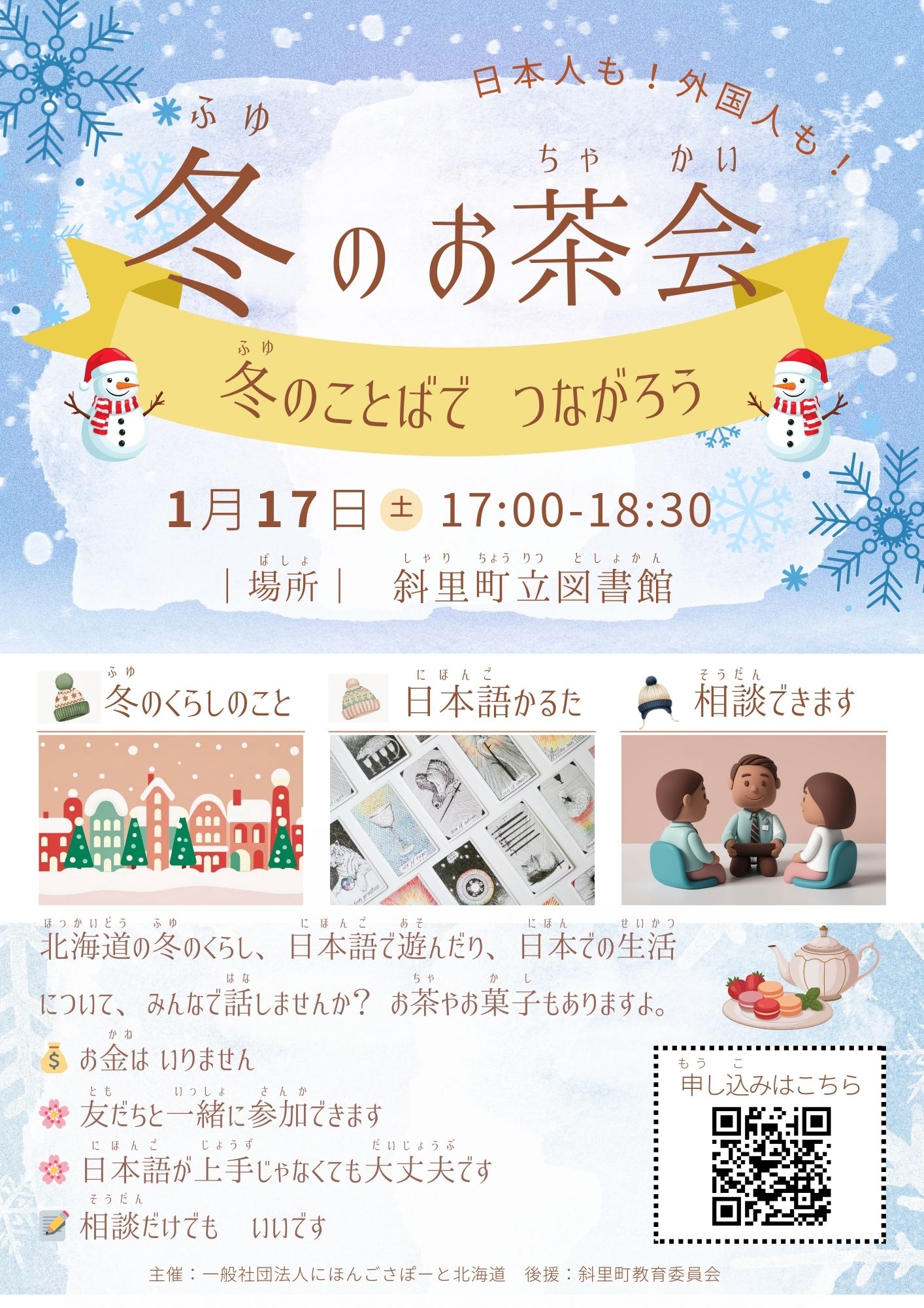 - 問合せ:一般社団法人 にほんごさぽーと北海道(電話:080-3292-2879)